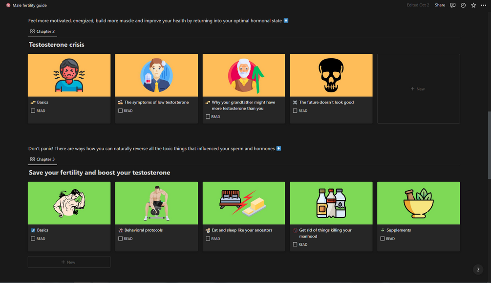 This guide is a culmination of my testosterone and fertility research done over the course of over 2 years. For your money you will get all the science-proven tools to fix and improve way above average levels both. You can decide whether you want to have a more holistic approach and learn about the problem a bit or you can skip straight to the part 3 where you will learn what are the solutions.